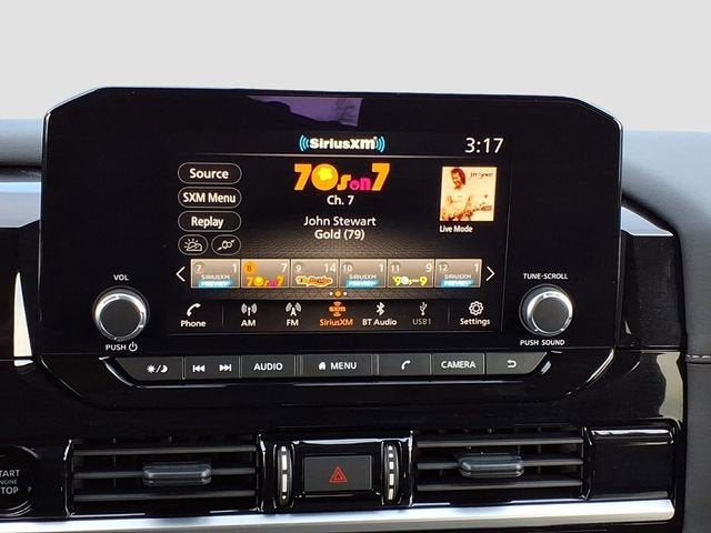 3rd row seats: bench, 4-Wheel Disc Brakes, 6 Speakers, ABS brakes, Air Conditioning, Alloy wheels, AM/FM radio: SiriusXM, Auto High-beam Headlights, Automatic temperature control, Bench Seat Carpeted Floor Mats (set of 4), Black Appearance Package, Black Grille, Black Liftgate Emblems, Brake assist, Bumpers: body-color, Cloth Seating Surfaces, Cross Bars, Delay-off headlights, Driver door bin, Driver vanity mirror, Dual front impact airbags, Dual front side impact airbags, Electronic Stability Control, Emergency communication system, Four wheel independent suspension, Front anti-roll bar, Front Bucket Seats, Front Center Armrest, Front dual zone A/C, Front reading lights, Fully automatic headlights, Heated door mirrors, Heated Front Bucket Seats, Heated front seats, Illuminated entry, Knee airbag, Leather steering wheel, Low tire pressure warning, NissanConnect featuring Apple CarPlay and Android Auto, Occupant sensing airbag, Outside temperature display, Overhead airbag, Overhead console, Panic alarm, Passenger door bin, Passenger vanity mirror, Power door mirrors, Power driver seat, Power Liftgate, Power steering, Power windows, Radio data system, Radio: AM/FM Audio System with NissanConnect, Rear air conditioning, Rear anti-roll bar, Rear Parking Sensors, Rear reading lights, Rear seat center armrest, Rear side impact airbag, Rear window defroster, Rear window wiper, Reclining 3rd row seat, Remote keyless entry, Security system, Speed control, Speed-sensing steering, Split folding rear seat, Spoiler, Steering wheel mounted audio controls, Tachometer, Telescoping steering wheel, Tilt steering wheel, Traction control, Trip computer, Turn signal indicator mirrors, Variably intermittent wipers, Wheels: 18 x 8J Painted Alloy.