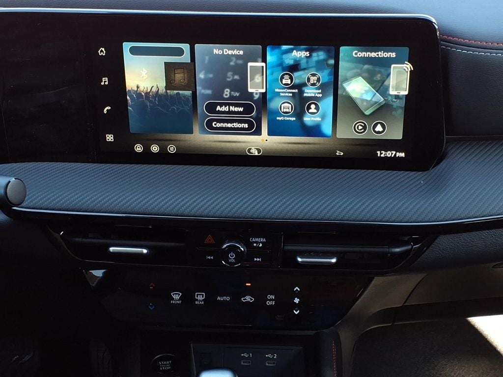 - Radio: AM/FM/SiriusXM Audio System -inc: 12.3" color touchscreen display w/6 speakers, Bluetooth® hands-free phone system, streaming audio via Bluetooth®, NissanConnect Services powered by SiriusXM featuring wireless Apple CarPlay, wireless Android Auto, Siri eyes free and hands-free text messaging assistant, audio and Bluetooth® steering wheel switches and Wi-Fi hotspot