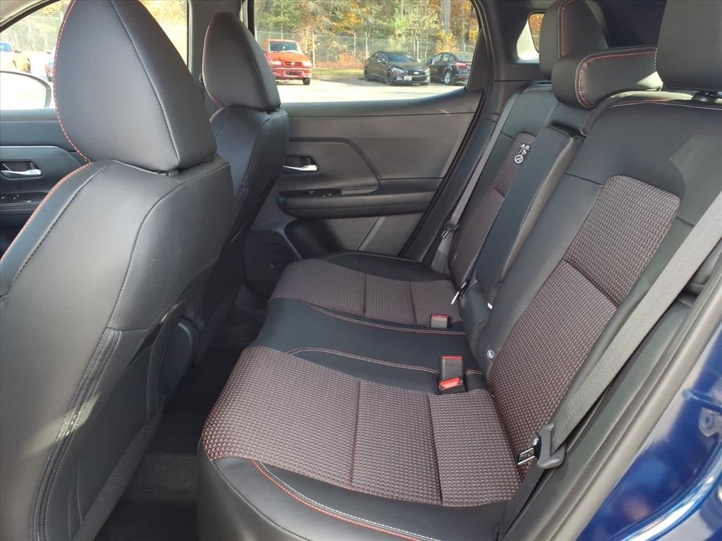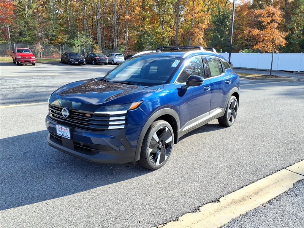 Deep Blue Pearl 2026 Nissan Kicks SR 17 Alloy Wheels, 19 Alloy Wheels, 4-Wheel Disc Brakes, 6 Speakers, ABS brakes, Air Conditioning, Alloy wheels, AM/FM radio, Auto High-beam Headlights, Automatic temperature control, Brake assist, Bumpers: body-color, Carpeted Floor Mats, Cold Weather Package, Crossbars, Delay-off headlights, Driver door bin, Driver vanity mirror, Dual front impact airbags, Dual front side impact airbags, Electronic Stability Control, Emergency communication system: NissanConnect Services, Exterior Parking Camera Rear, Four wheel independent suspension, Front anti-roll bar, Front Bucket Seats, Front Center Armrest, Front reading lights, Fully automatic headlights, Garage door transmitter: myQ Connected Garage, Heated Front Seats, Heated Mirrors, Illuminated entry, Knee airbag, Leather Shift Knob, Leather steering wheel, Low tire pressure warning, NissanConnect featuring Apple CarPlay and Android Auto, Occupant sensing airbag, Outside temperature display, Overhead airbag, Overhead console, Panic alarm, Passenger door bin, Passenger vanity mirror, Power door mirrors, Power steering, Power windows, Radio data system, Radio: AM/FM/SiriusXM Audio System, Rear anti-roll bar, Rear Floor Heater Ducts, Rear reading lights, Rear seat center armrest, Rear side impact airbag, Rear window defroster, Rear window wiper, Remote keyless entry, Security system, Speed control, Speed-sensing steering, Splash Guards, Split folding rear seat, Spoiler, Sport Leatherette w/Cloth Insert Seat Trim, Sport steering wheel, Steering wheel mounted audio controls, Tachometer, Telescoping steering wheel, Tilt steering wheel, Traction control, Trip computer, Turn signal indicator mirrors, Variably intermittent wipers. Price includes: $1000 - Nissan Customer Cash. Exp. 02/02/2026