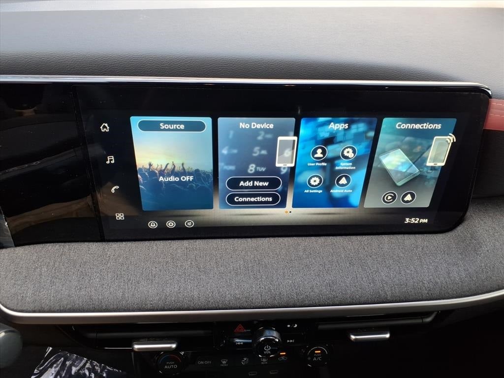 - Radio: AM/FM/SiriusXM Audio System -inc: 12.3" color touchscreen display w/4 speakers, Bluetooth® hands-free phone system, streaming audio via Bluetooth®, NissanConnect featuring wireless Apple CarPlay, wireless Android Auto, Siri eyes free and hands-free text messaging assistant, audio and Bluetooth® steering wheel switches