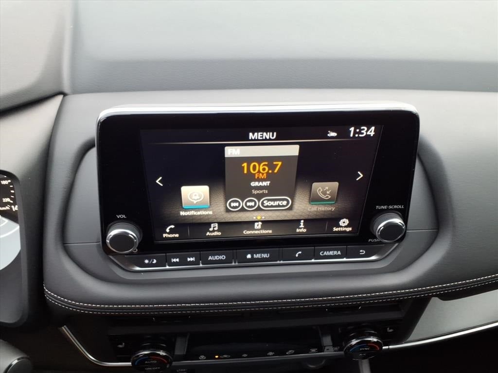 - Radio: AM/FM NissanConnect -inc: 6 speakers plus 2 tweeters, Apple CarPlay, Android Auto, 8" color touch screen display, Bluetooth®, 2 front USB type-C, Wi-Fi hotspot and NissanConnect Services powered by SiriusXM