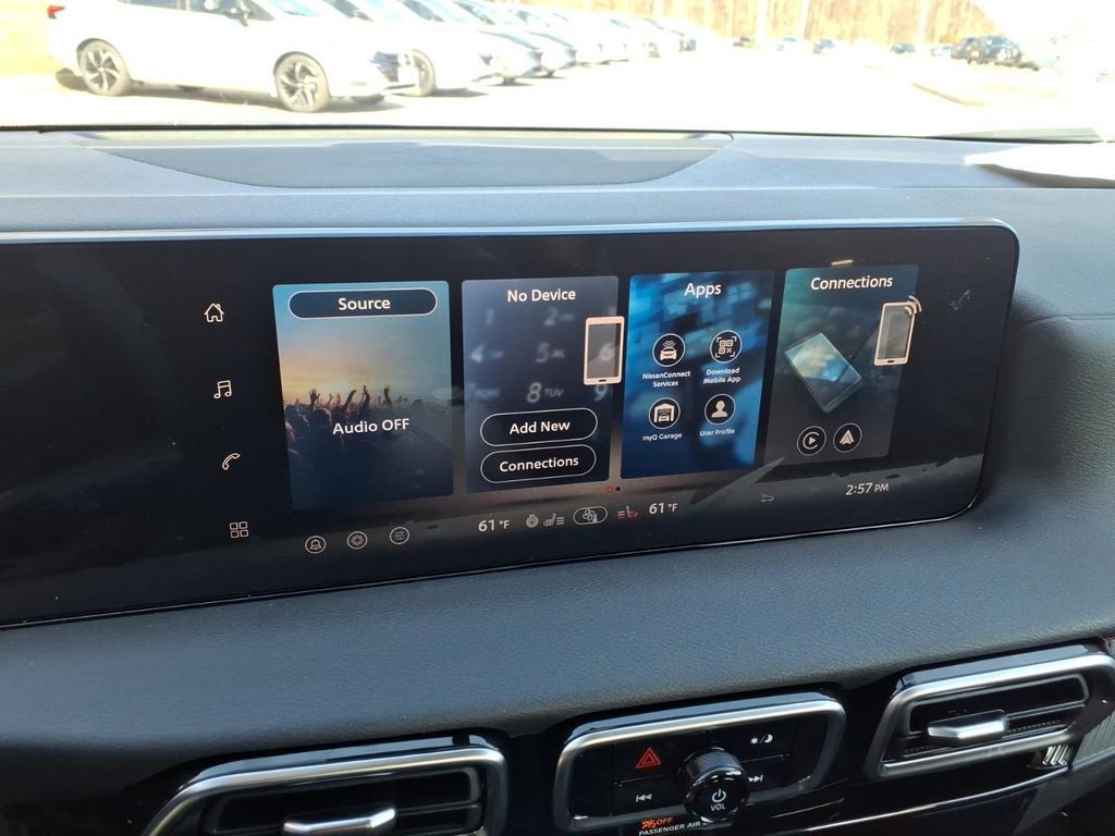 - Radio: AM/FM w/RDS/MP3 -inc: 6 speakers, 12.3" NissanConnect multimedia center display, Bluetooth® hands-free phone system, streaming audio via Bluetooth®, hands-free text messaging assistant, Siri Eyes Free, Google Assistant voice recognition, wireless Apple CarPlay and Android Auto and (2) front USB connection port (type C)