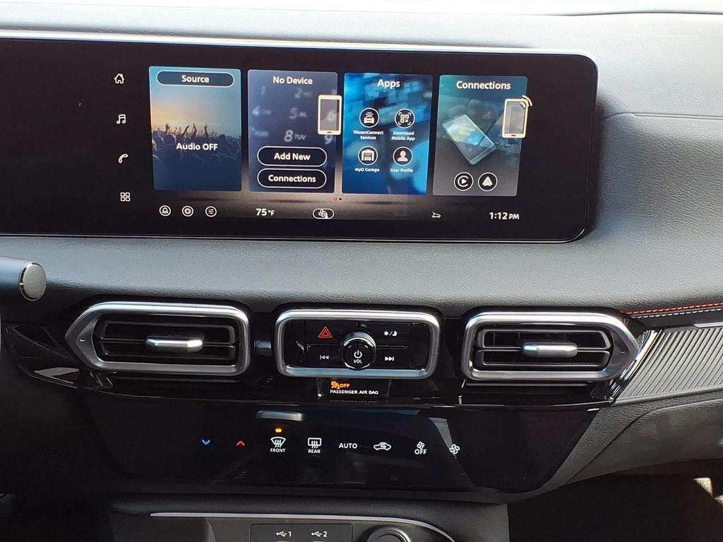 - Radio: AM/FM w/RDS/MP3 -inc: 6 speakers, 12.3" NissanConnect multimedia center display, Bluetooth® hands-free phone system, streaming audio via Bluetooth®, hands-free text messaging assistant, Siri Eyes Free, Google Assistant voice recognition, wireless Apple CarPlay and Android Auto, NissanConnect services, Wi-Fi hotspot, Over-The-Air (OTA) updating for headunit firmware via Wi-Fi WPA2 connection and (2) front USB connection port (type C)