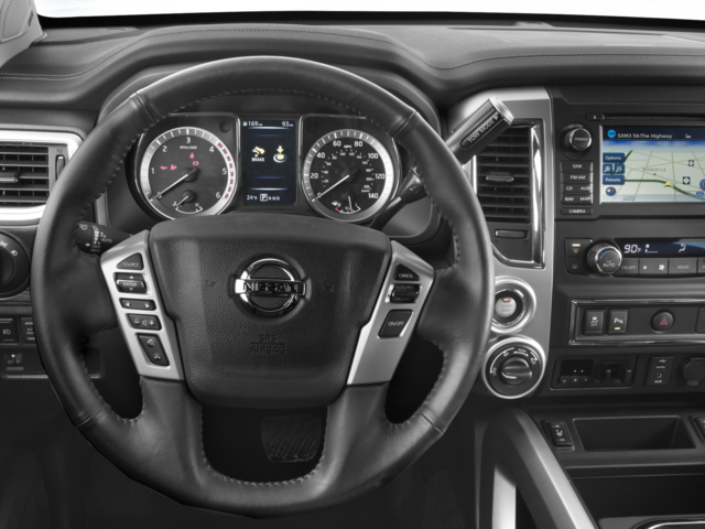12 Speakers, 3.916 Axle Ratio, 4-Wheel Disc Brakes, ABS brakes, Activation Disclaimer, Air Conditioning, Alloy wheels, AM/FM radio: SiriusXM, Auto tilt-away steering wheel, Auto-dimming door mirrors, Auto-dimming Rear-View mirror, Automatic temperature control, Block heater, Brake assist, Bumpers: chrome, CD player, Chrome Exhaust Finisher, Chrome Grille, Compass, Delay-off headlights, Driver door bin, Driver vanity mirror, Dual front impact airbags, Dual front side impact airbags, Electronic Stability Control, Emergency communication system, Front anti-roll bar, Front Bucket Seats, Front Center Armrest, Front dual zone A/C, Front fog lights, Front reading lights, Front wheel independent suspension, Garage door transmitter: HomeLink, Heated Captain's Chairs, Heated door mirrors, Heated front seats, Illuminated entry, Leather Seat Trim, Leather steering wheel, LED Fog Lights w/Bright Chrome Bezel, Low tire pressure warning, Memory seat, Metallic Kick Plates, Navigation System, Outside temperature display, Overhead airbag, Overhead console, Panic alarm, Passenger door bin, Passenger vanity mirror, Power door mirrors, Power driver seat, Power passenger seat, Power steering, Power windows, Radio data system, Radio: NissanConnect w/Navigation & Mobile Apps, Rain sensing wipers, Rear anti-roll bar, Rear Bumper Step, Rear seat center armrest, Rear Seat Storage Compartment w/Luggage Floor, Rear step bumper, Rear window defroster, Remote keyless entry, Rockford Fosgate Premium Audio w/12 Speakers, Running Boards, Security system, Speed control, Speed-sensing steering, Speed-Sensitive Wipers, Splash Guards (B93), Split folding rear seat, Steering wheel memory, Steering wheel mounted audio controls, Tachometer, Telescoping steering wheel, Texas TITAN Edition, Texas TITAN Floor Mats (B09), Tilt steering wheel, Traction control, Turn signal indicator mirrors, Variably intermittent wipers, Voltmeter, Wheels: 20 x 7.5 Chrome, Wheels: 20 x 7.5 Painted Alloy.