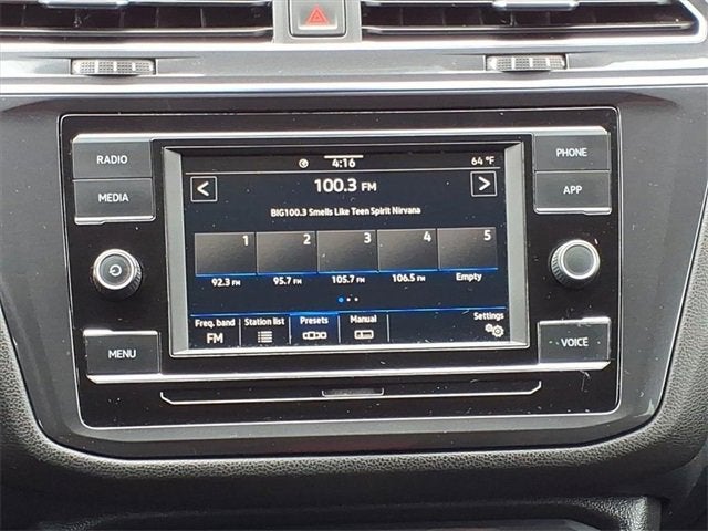 3-Row Rubber Monster Mats w/Logo Kit (Set of 5), 3.33 Axle Ratio, 3rd row seats: bench, 4-Wheel Disc Brakes, 4-Wheel Independent Suspension, 6 Speakers, ABS brakes, Active Side Assist (Blind Spot Monitor), Adaptive Cruise Control (ACC) w/Stop & Go, Air Conditioning, Alloy wheels, AM/FM radio, Auto-Dimming Interior Rear-View Mirror, Automatic Rain-Sensing Front Wipers, Brake assist, Bumperdillo Rear Bumper Protection Plate in Chrome, Bumpers: body-color, Cloth Seating Surfaces, Compass, Convenience Package, Delay-off headlights, Driver door bin, Driver vanity mirror, Dual front impact airbags, Dual front side impact airbags, Electronic Stability Control, Emergency Assist, Emergency communication system: Car-Net, Exterior Parking Camera Rear, First Aid Kit, Forward collision: FCW w/Autonomous Emergency Braking mitigation, Four wheel independent suspension, Front anti-roll bar, Front Assist, Front Bucket Seats, Front Center Armrest, Front reading lights, Fully automatic headlights, Hands-On Detection Sensors in Steering Wheel, Heated door mirrors, Heated Front Bucket Seats, Heated front seats, Heavy Duty Trunk Liner w/VW CarGo Blocks, Illuminated entry, IQ.DRIVE Package, Lane Assist (Lane Keeping System), Leather Shift Knob, Leatherette-Wrapped Steering Wheel, Low tire pressure warning, Occupant sensing airbag, Outside temperature display, Overhead airbag, Overhead console, Panic alarm, Passenger door bin, Passenger vanity mirror, Power door mirrors, Power steering, Power windows, Radio data system, Radio: Composition Color AM/FM, Rear anti-roll bar, Rear reading lights, Rear seat center armrest, Rear Traffic Alert, Rear window defroster, Rear window wiper, Remote keyless entry, Roadside Assistance Kit, Roof rack: rails only, Speed control, Speed-sensing steering, Split folding rear seat, Spoiler, Steering wheel mounted audio controls, Tachometer, Telescoping steering wheel, Tilt steering wheel, Traction control, Travel Assist (Semi-Automated Driving Assistance), Trip computer, Turn signal indicator mirrors, Variably intermittent wipers, VW Care, Wheels: 17 2-Tone Machined Twin 5-Spoke Alloy.