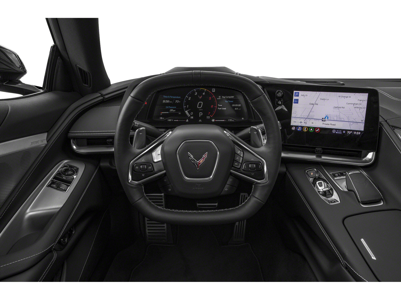 14 Speakers, 2 Cargo Nets, 4-Wheel Disc Brakes, 8-Way Power Driver Seat Adjuster, 8-Way Power Passenger Seat Adjuster, ABS brakes, Air Conditioning, Alloy wheels, AM/FM radio: SiriusXM, Apple CarPlay/Android Auto, Auto-dimming door mirrors, Auto-dimming Rear-View mirror, Automatic temperature control, Body-Color Exterior Accents, Body-Color Removable Roof Panel, Bose Performance Series Sound System w/14 Speakers, Brake assist, Bumpers: body-color, Compass, Custom Leather Wrapped Interior Package, Delay-off headlights, Driver door bin, Driver Power Bolster Seat Adjuster, Driver vanity mirror, Dual front impact airbags, Dual front side impact airbags, Electrical Theft Deterrent System, Electronic Limited-Slip Differential, Electronic Stability Control, Emergency communication system: OnStar and Chevrolet connected services capable, Four wheel independent suspension, Front anti-roll bar, Front Bucket Seats, Front Center Armrest, Front dual zone A/C, Front License Plate Bracket, Front reading lights, Fully automatic headlights, Garage door transmitter, GT2 Bucket Seats, HD Front & Rear Vision Cameras, HD Radio, Head-Up Display, Heads-Up Display, Heated & Vented Driver & Passenger Seats, Heated door mirrors, Heated front seats, Heated Steering Wheel, Heated steering wheel, Heavy-Duty Cooling System, Illuminated entry, Leather Shift Knob, Leather steering wheel, Low tire pressure warning, Memory Driver & Passenger Convenience Package, Memory seat, Napa Lthr Seating Surfaces w/Perforated Inserts, Natural Seat Belt Color, Natural Seat Belt Color w/Natural Dipped Interior, Navigation System, Occupant sensing airbag, Outside temperature display, Overhead console, Panic alarm, Passenger door bin, Passenger Power Bolster Seat Adjuster, Passenger vanity mirror, Performance Data & Video Recorder, Performance Exhaust w/Stainless-Steel Tips, Performance Rear Axle Ratio, Power door mirrors, Power Driver Lumbar Control Seat Adjuster, Power driver seat, Power Passenger Lumbar Control Seat Adjuster, Power passenger seat, Power steering, Power windows, Power-Adjustable Outside Heated Mirrors, Preferred Equipment Group 3LT, Premium audio system: Chevrolet Infotainment 3 Premium, Radio data system, Radio: Chevrolet Infotainment 3 Premium System, Rear anti-roll bar, Rear Camera Mirror, Rear Cross Traffic Alert, Rear window defroster, Rear Z51 Spoiler, Remote keyless entry, Security system, Side Blind Zone Alert, SiriusXM Radio, Speed control, Speed-sensing steering, Sport steering wheel, Steering wheel memory, Steering wheel mounted audio controls, Sueded Microfiber-Wrapped Upper Interior Trim Pkg, Tachometer, Telescoping steering wheel, Tilt steering wheel, Traction control, Trip computer, Turn signal indicator mirrors, Universal Home Remote, Variably intermittent wipers, Vehicle Inclination Theft Deterrent Sensor, Vehicle Interior Movement Theft Deterrent Sensor, Ventilated front seats, Visible Carbon Fiber Removable Roof Panel, Voltmeter, Wheels: 19 x 8.5 Fr/20 x 11 Rr Bright Silver, Wireless Charging for Devices, Z51 Performance Brakes, Z51 Performance Package, Z51 Performance Suspension.