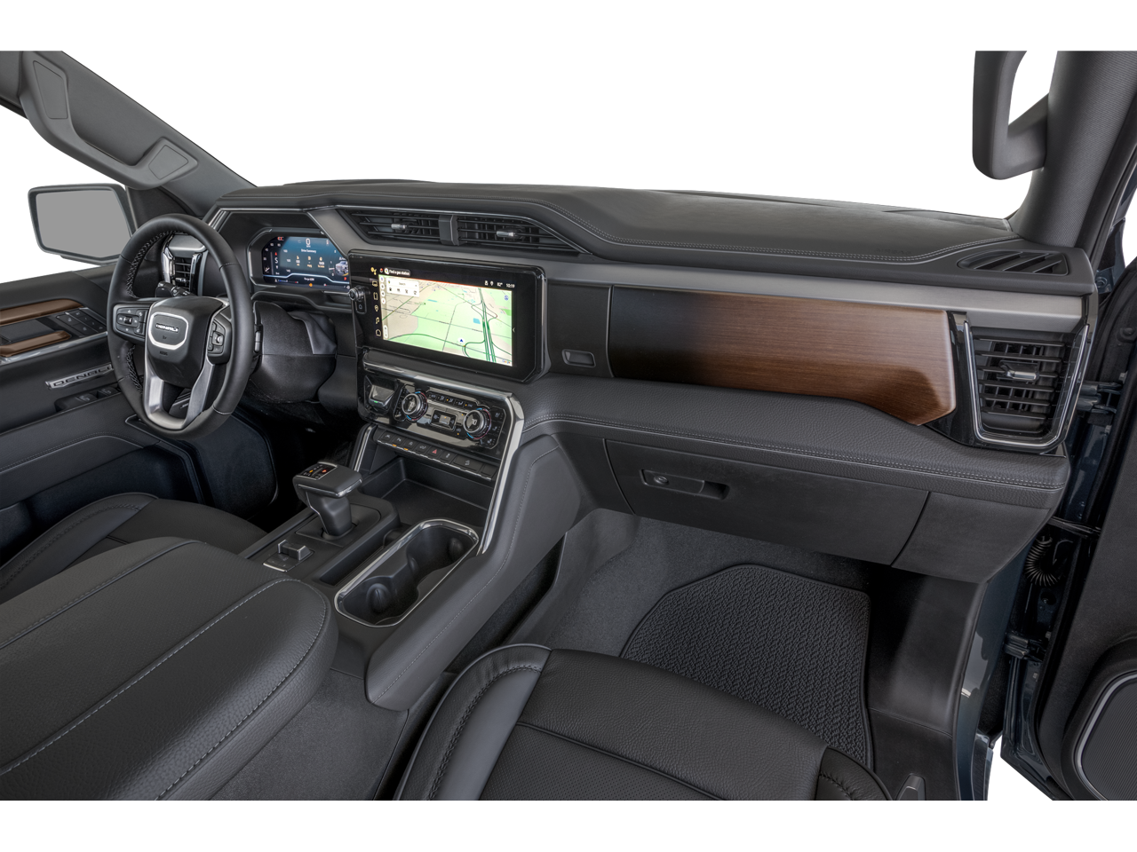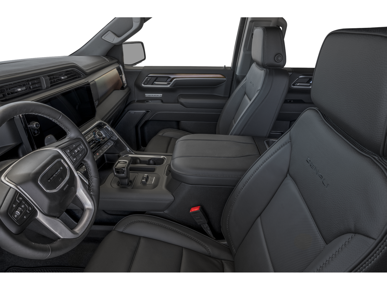 12-Way Power Driver Seat Adjuster with Lumbar, 12-Way Power Passenger Seat Adjuster with Lumbar, 120-Volt Bed Mounted Power Outlet, 120-Volt Interior Power Outlet, 170 Amp Alternator, 2 Charge/Data USB Ports Inside Center Console, 2 Type-C Charge-Only Rear USB Ports, 2 USB Ports, 3.23 Rear Axle Ratio, 4-Wheel Disc Brakes, 7 Speakers, ABS brakes, Adaptive suspension, Air Conditioning, Alloy wheels, AM/FM radio: SiriusXM with 360L, Apple CarPlay/Android Auto, Auto High-beam Headlights, Auto-dimming door mirrors, Auto-dimming Rear-View mirror, Auto-Locking Rear Differential, Automatic temperature control, Auxiliary External Transmission Oil Cooler, Bed View Camera, Brake assist, Buckle to Drive, Bumpers: body-color, Chrome Header with Signature Denali Chrome Grille, Chrome Recovery Hooks, Chrome Wheel to Wheel Assist Steps, Color-Keyed Carpeting Floor Covering, Compass, Deep-Tinted Glass, Delay-off headlights, Denali Premium Suspension with Adaptive Ride Control, Denali Reserve Super Package, Driver door bin, Driver Memory, Driver vanity mirror, Dual Active Exhaust, Dual front impact airbags, Dual front side impact airbags, Electric Rear-Window Defogger, Electronic Stability Control, Emergency communication system: OnStar, Engine Block Heater, Enhanced Automatic Emergency Braking, Floor-Mounted Center Console, Following Distance Indicator, Forge Perforated Leather Seat Trim, Forward Collision Alert, Front anti-roll bar, Front Bucket Seats, Front Center Armrest, Front dual zone A/C, Front fog lights, Front License Plate Kit, Front Pedestrian Braking, Front Rain-Sensing Wipers, Front reading lights, Front wheel independent suspension, Fully automatic headlights, Garage door transmitter, Genuine wood console insert, Genuine wood dashboard insert, Genuine wood door panel insert, GMC MultiPro Power Steps, HD Surround Vision, Heated 2nd Row Outboard Seats, Heated door mirrors, Heated Driver and Front Outboard Passenger Seating, Heated front seats, Heated rear seats, Heated steering wheel, Heavy-Duty Air Filter, Hill Descent Control, Hitch Guidance, Hitch View, Illuminated entry, in-Vehicle Trailering System App, Integrated Trailer Brake Controller, IntelliBeam Automatic High Beam on/Off, Keyless Open and Start, Lane Keep Assist with Lane Departure Warning, LED Cargo Area Lighting, Low tire pressure warning, Memory seat, Multicolor 15 Diagonal Head-Up Display, Navigation System, Occupant sensing airbag, OnStar Services Capable, Outside temperature display, Overhead airbag, Overhead console, Panic alarm, Passenger door bin, Passenger vanity mirror, Perimeter Lighting, Power Door Locks, Power door mirrors, Power driver seat, Power Front Passenger Windows with Express Up/Down, Power Front Windows with Driver Express Up/Down, Power passenger seat, Power Rake and Telescoping Steering Column, Power Rear Windows with Express Down, Power Sliding Rear Window with Rear Defogger, Power steering, Power Sunroof, Power windows, Preferred Equipment Group 5SA, Premium Bose 7-Speaker Sound System, Push Button Start, Radio data system, Radio: Premium GMC Infotainment Audio System, Rain sensing wipers, Rear Camera Mirror, Rear Cross Traffic Braking, Rear Pedestrian Detection, Rear reading lights, Rear seat center armrest, Rear step bumper, Rear Wheelhouse Liners, Rear window defroster, Remote keyless entry, Remote Vehicle Starter System, Safety Alert Seat, Security system, SiriusXM with 360L Trial Subscription, Speed control, Speed-sensing steering, Split folding rear seat, Spray-on Pickup Bedliner with GMC Logo, Steering Wheel Audio Controls, Steering wheel mounted audio controls, Super Cruise, Super Cruise Wrapped Steering Wheel, Tachometer, Technology Package, Telescoping steering wheel, Theft Deterrent System (unauthorized Entry), Tilt steering wheel, Traction control, Trai